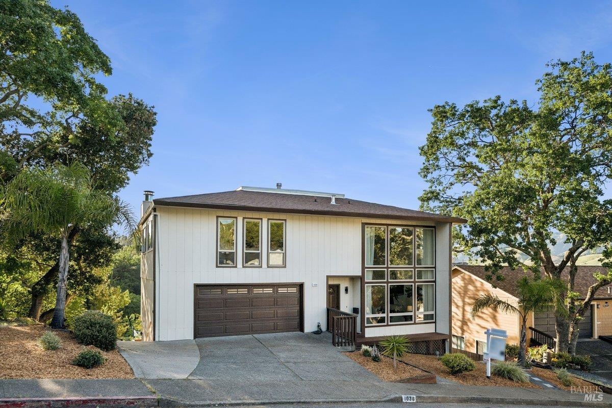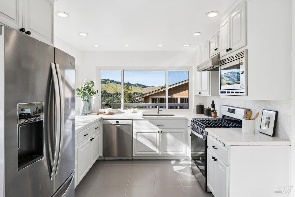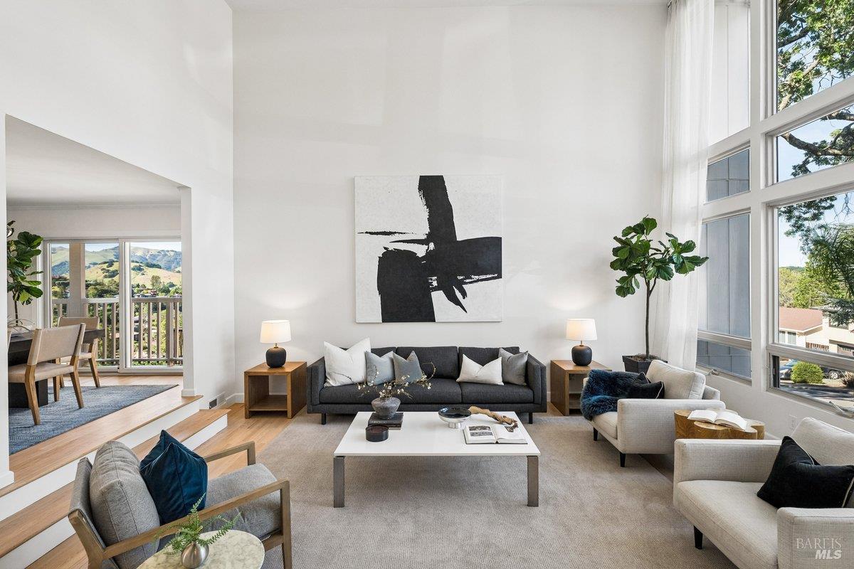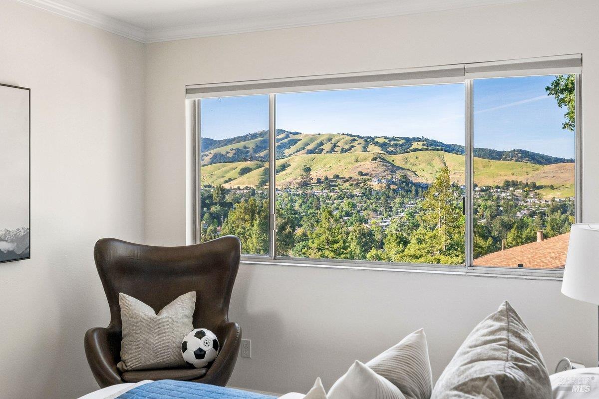 Sweeping views of the idyllic Terra Linda hills create a stunning backdrop from multiple rooms and outdoor spaces. Recently refreshed with newly refinished hardwood floors, new carpet & fresh interior paint, the home is light-filled and move-in ready. The main level features the kitchen with an eat-in breakfast area where you can cook while watching birds soar across your private hillside views. The adjacent formal dining room and dramatic living roomwith soaring 2-story ceilings and walls of windowscreate an airy, light-filled space. A cozy family room with fireplace and built-ins offers seamless indoor/outdoor flow to a view deckperfect for morning coffee or evening sunsetswith stairs leading to a large secondary entertaining deck below. A half bath, laundry room, and garage complete the main level. Upstairs offers a generous primary suite, with sitting area and full bathroom, private view deck, and sweeping hillside vistas, plus 4 additional bedrooms and 2 full bathrooms. The approx. 428 SqFt JADU downstairs includes its own kitchenette, full bath, bedroom, interior access + separate exterior entranceideal for guests, au pair, extended family or rental income. Additional features include an oversized 2-car garage, abundant storage both in the garage and down below the house and a large, sloped lot with endless potentialgarden, orchard, or terraced outdoor living. Enjoy the ease of Terra Linda with immediate access to open space, hiking trails, parks, the Terra Linda Rec Center & Pool, shopping, restaurants, Kaiser & Hwy 101along with the highly sought-after Miller Creek Schools. A rare and special offering, don't miss this special property.