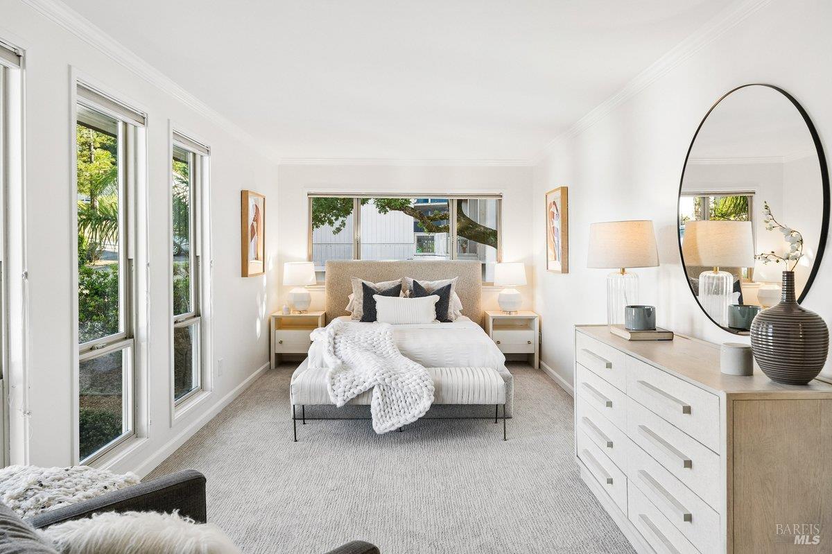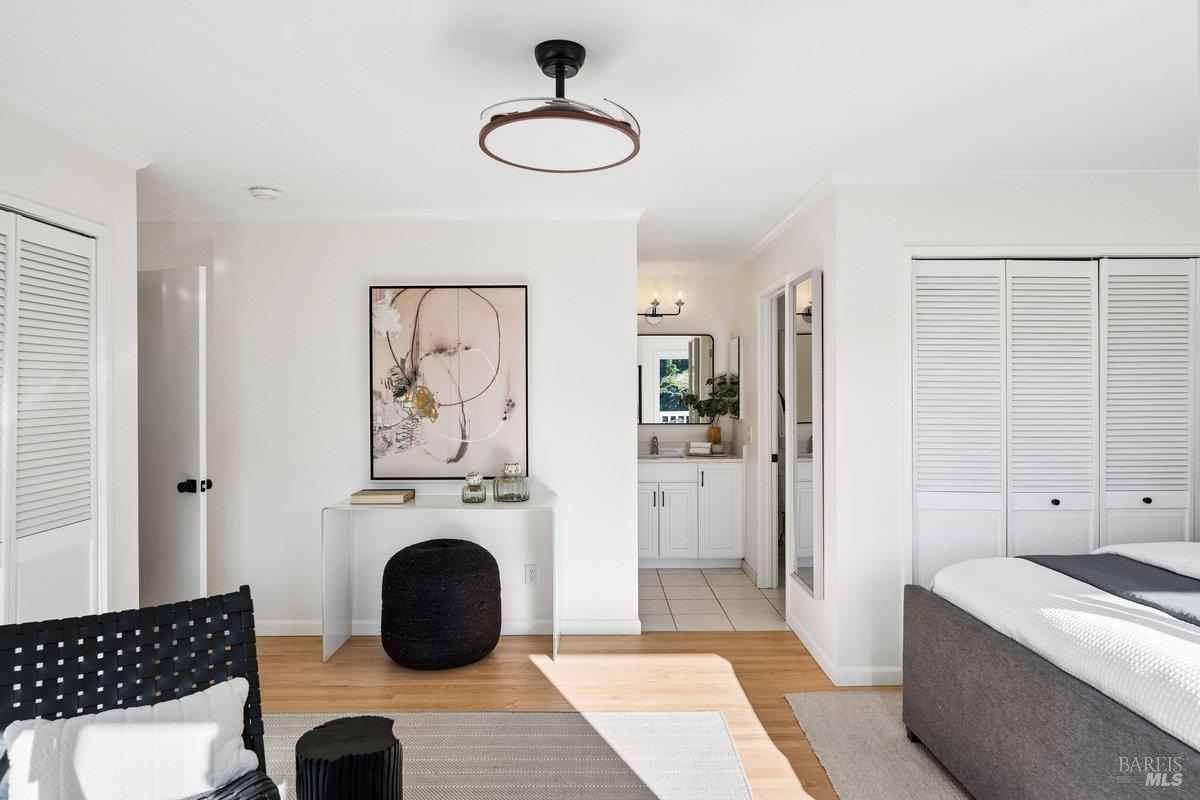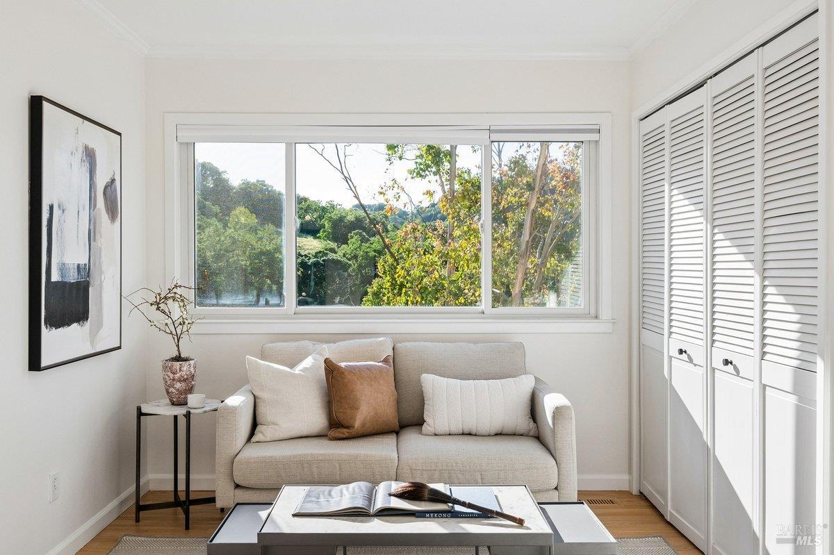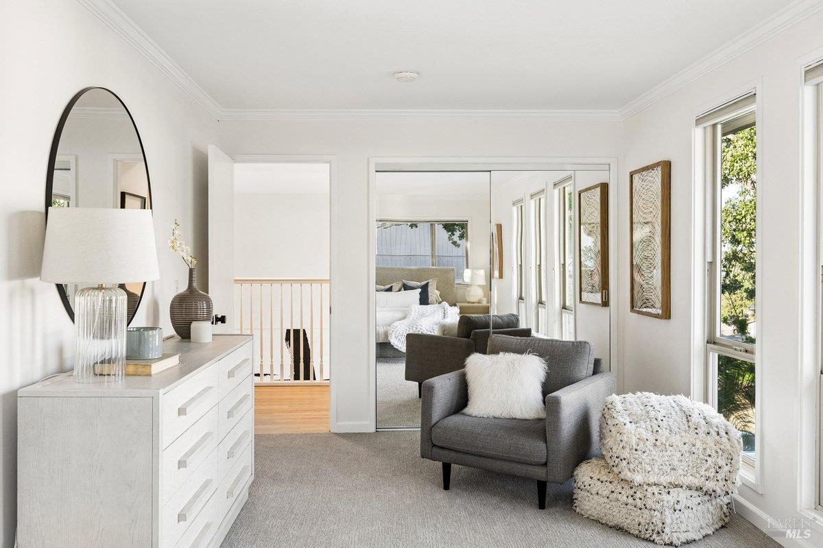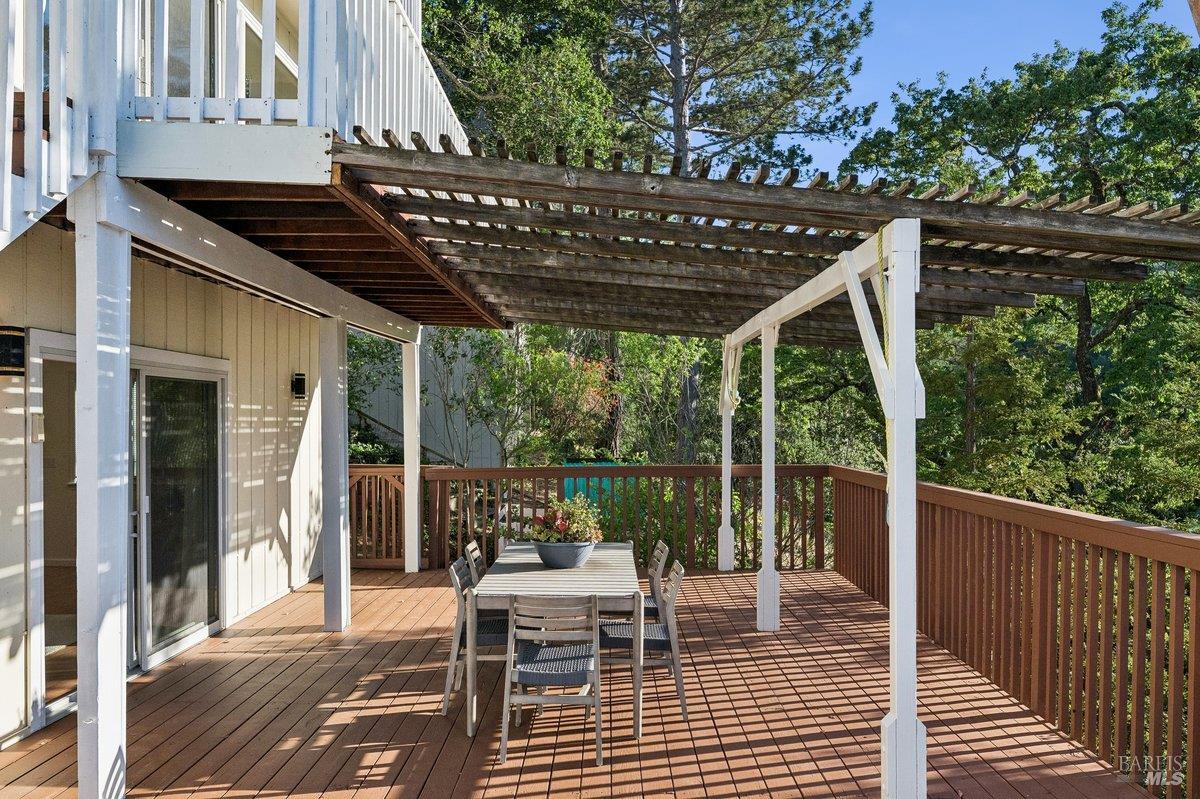 Sweeping views of the idyllic Terra Linda hills create a stunning backdrop from multiple rooms and outdoor spaces. Recently refreshed with newly refinished hardwood floors, new carpet & fresh interior paint, the home is light-filled and move-in ready. The main level features the kitchen with an eat-in breakfast area where you can cook while watching birds soar across your private hillside views. The adjacent formal dining room and dramatic living roomwith soaring 2-story ceilings and walls of windowscreate an airy, light-filled space. A cozy family room with fireplace and built-ins offers seamless indoor/outdoor flow to a view deckperfect for morning coffee or evening sunsetswith stairs leading to a large secondary entertaining deck below. A half bath, laundry room, and garage complete the main level. Upstairs offers a generous primary suite, with sitting area and full bathroom, private view deck, and sweeping hillside vistas, plus 4 additional bedrooms and 2 full bathrooms. The approx. 428 SqFt JADU downstairs includes its own kitchenette, full bath, bedroom, interior access + separate exterior entranceideal for guests, au pair, extended family or rental income. Additional features include an oversized 2-car garage, abundant storage both in the garage and down below the house and a large, sloped lot with endless potentialgarden, orchard, or terraced outdoor living. Enjoy the ease of Terra Linda with immediate access to open space, hiking trails, parks, the Terra Linda Rec Center & Pool, shopping, restaurants, Kaiser & Hwy 101along with the highly sought-after Miller Creek Schools. A rare and special offering, don't miss this special property.