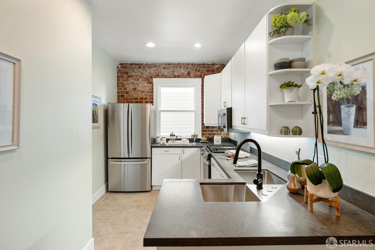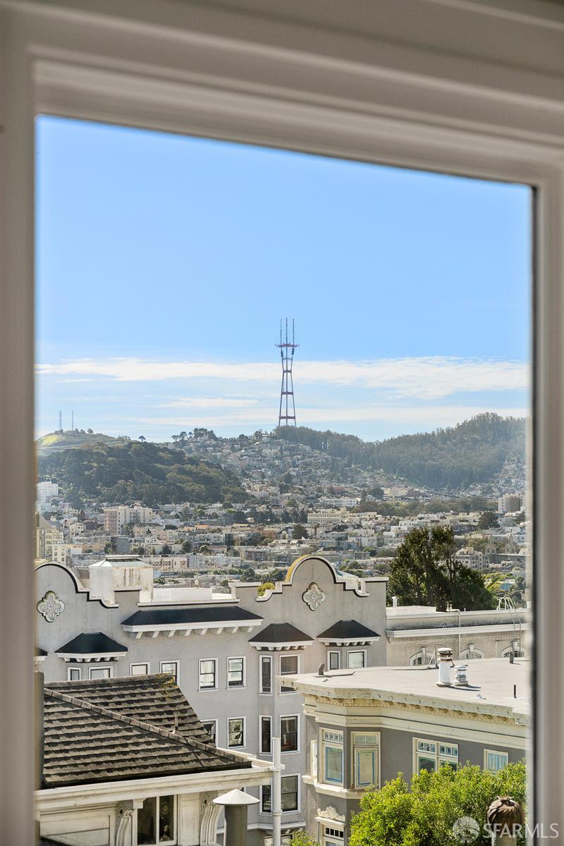 Rare Pacific Heights opportunity in a coveted elevator building, with sweeping south-facing views! This must-see condo blends exquisite period craftsmanship with modern convenience. The bright, spacious interior features tall ceilings, classic bay windows, and sweeping south-facing views including Sutro Tower. Historic Edwardian details include exposed brick, custom millwork, and hardwood floors with beautiful inlay. The formal dining room pairs warm wood paneling with custom built-in cabinetry. The sun-drenched living room features an exposed brick accent wall and a decorative fireplace. The primary bedroom offers a custom closet and south-facing views. A second bedroom separated from the living room by pocket doors creates a wonderfully flexible layout: enjoy a traditional two-bedroom home, or configure as a spacious one-bedroom with a gracious double-parlor living room/guest room. The newly updated kitchen includes quartz counters, a gas range, and abundant pantry storage. A cozy, sunlit room just off the kitchen is ideal for a home office or workout space. One-car parking (the best spot in the building!) plus a deeded storage unit. Prime location : steps away from Fillmore Street shops, restaurants & cafes and one block away from Lafayette Park with easy access to multiple transit lines.