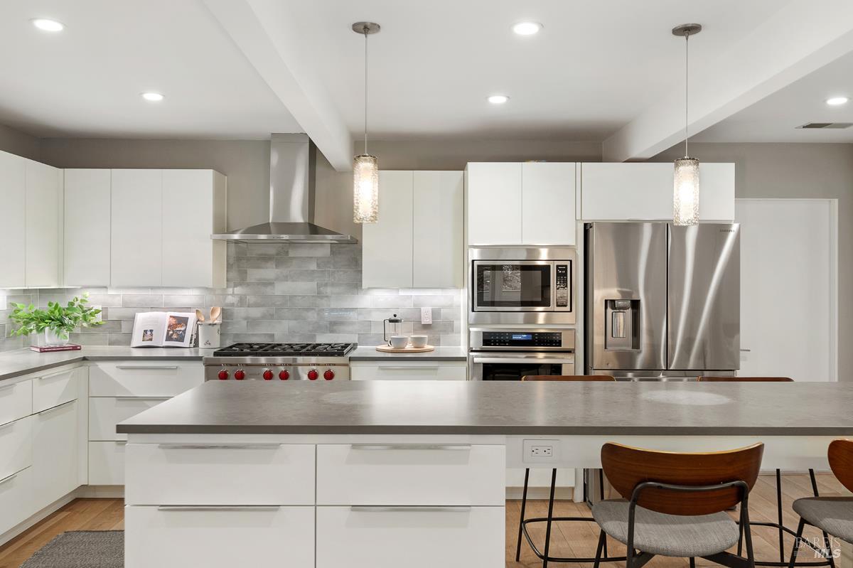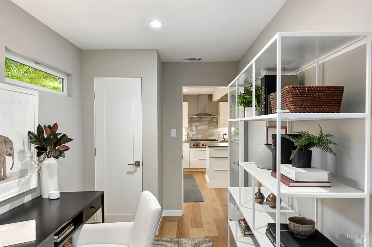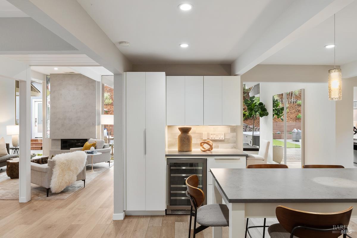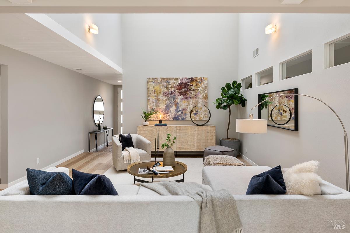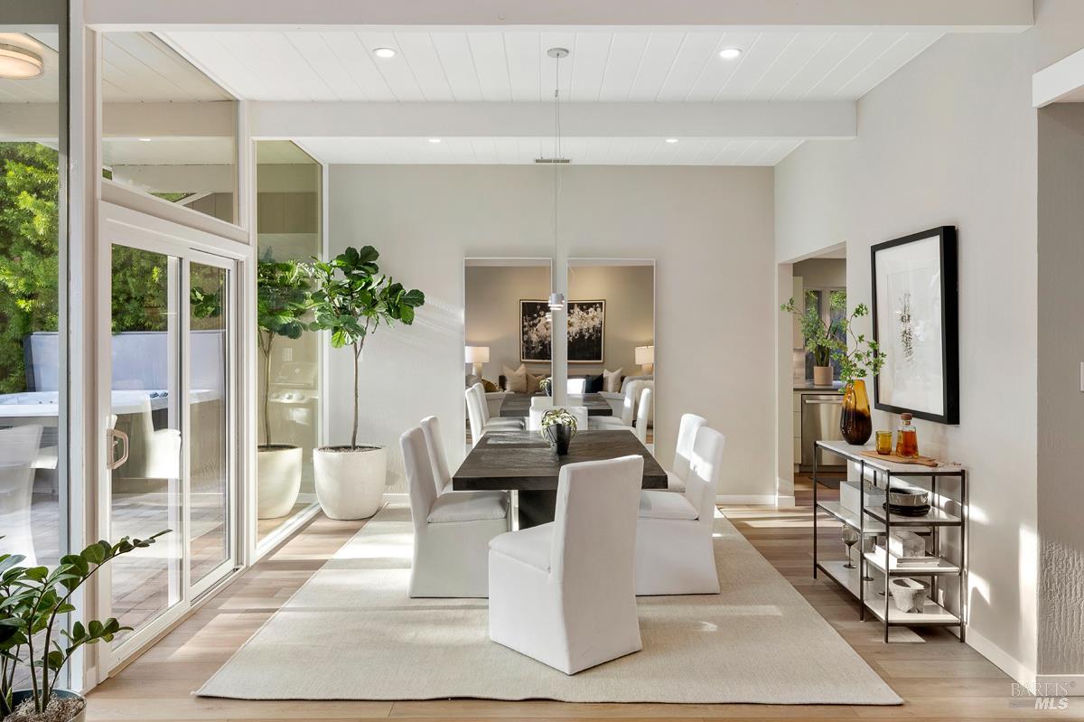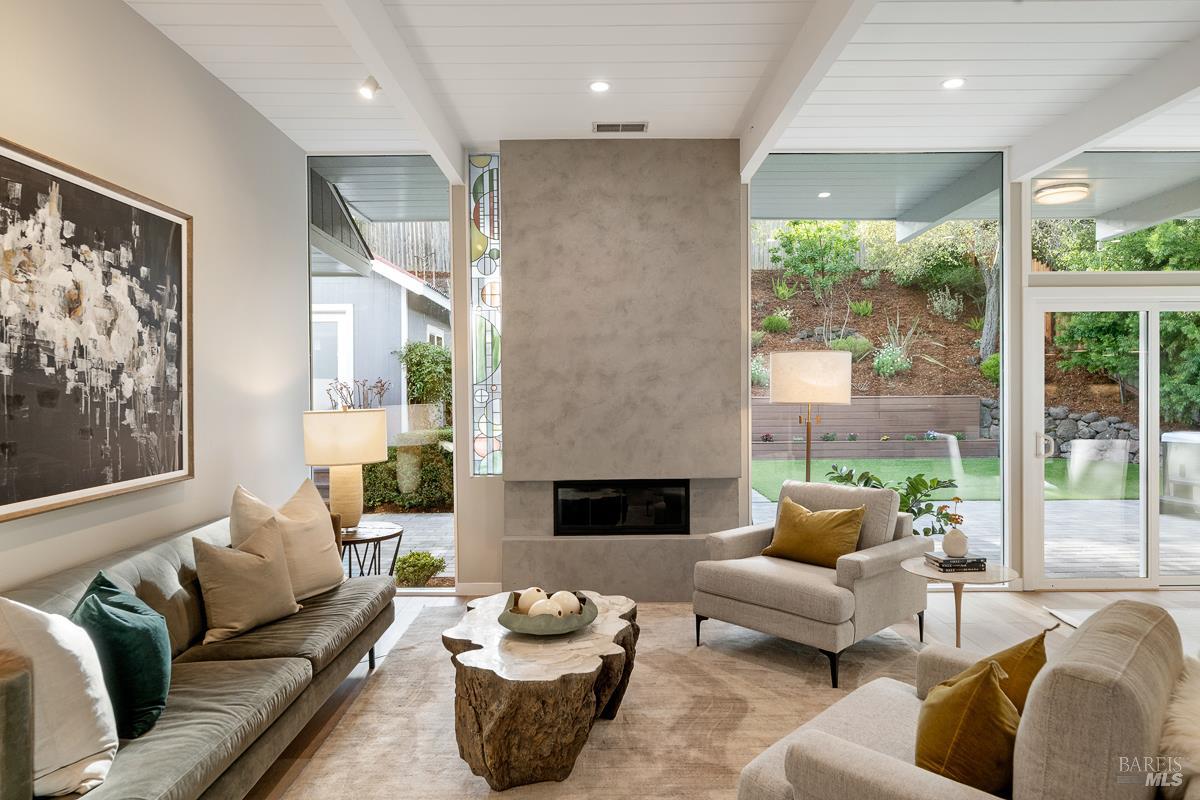 Expanded & remodeled 4BR/2BA Mid-Century Modern home that you've been waiting for! Approx. 2,134 SqFt + detached 120 SqFt office (≈2,254 SqFt total). Walls of dual-pane windows, open floor plan & soaring cathedral ceilings create incredible natural light & seamless indoor/outdoor flow. This rare reimagined Eichler features a raised roof with central Heat & A/C + large attic storage. Tucked at the end of Del Ganado in Terra Linda near TL/Sleepy Hollow Open Space & Santa Margarita Parkprivacy, hills & miles of hiking/biking. Remodeled kitchen with quartz counters, Wolf range, eat-in island (seats 5) opens to a spacious great room. The original atrium is now a 2nd family room with soaring ceilings. Two offices: detached 120 SqFt office + bonus room off kitchen (office/gym/flex). Primary suite offers walk-in closet & remodeled bath with dual sinks & skylights. Hall bath includes shower-over-tub; 3 vanities total (1 dual, 1 single). Private 8,000+ SqFt lot with gas fire pit, hot tub, turf & gardens + storage shed. 2-car garage, laundry, new raised comp roof, owned solar. Miller Creek Schools. Classic Eichler living updated for today's Marin lifestyle!